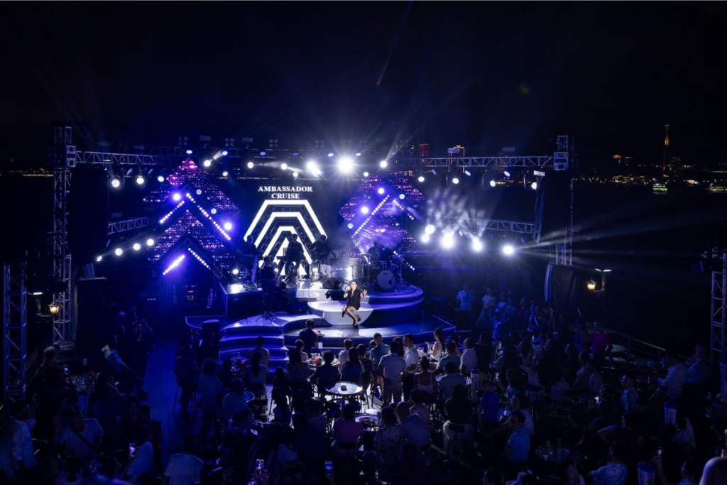 According to the Vietnam Record Association, Ambassador Cruise II has been officially certified as the largest-capacity cruise ship in Vietnam, accommodating up to 600 guests. In addition, the “Love in the Bay” performance has been acknowledged as the largest-scale musical show ever held on a cruise. Featuring a 100-square-meter stage and a state-of-the-art lighting system with over 150 modern devices, the show creates an exceptional entertainment space amidst the breathtaking beauty of Halong Bay.