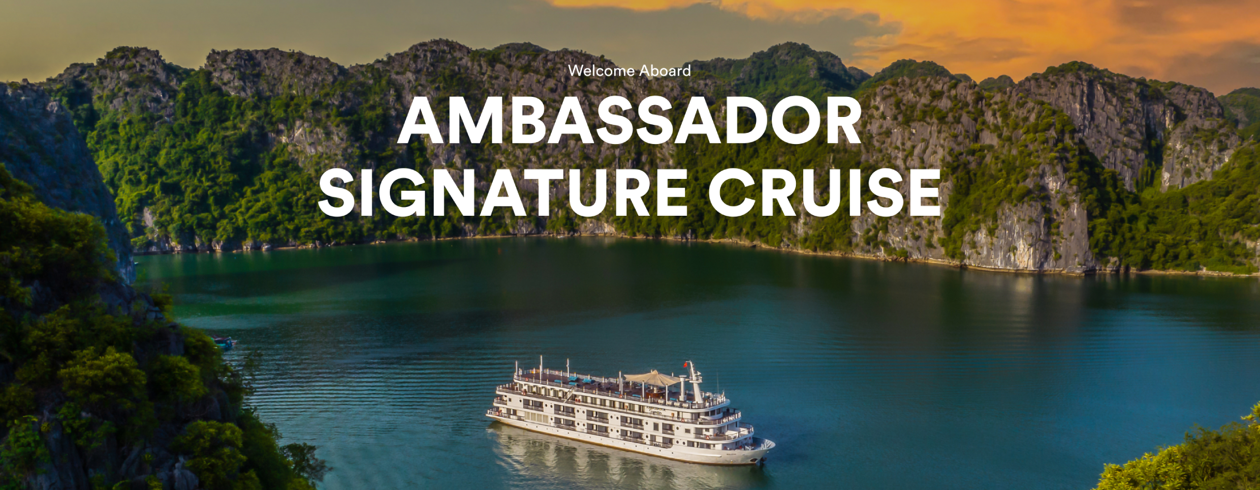 The Ambassador Signature, the latest addition to the Ambassador Cruise Line fleet, complements its Halong Bay sister ships, Ambassador I and Ambassador II. With a mere 39 expansive cabins starting at 28 sqm, each featuring a balcony and a well-appointed ensuite bath, it offers a luxurious haven. Additionally, the ship boasts a spa, a refined piano lounge, and a sundeck adorned with comfortable loungers for your ultimate relaxation.