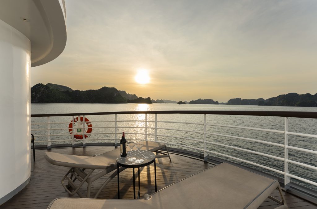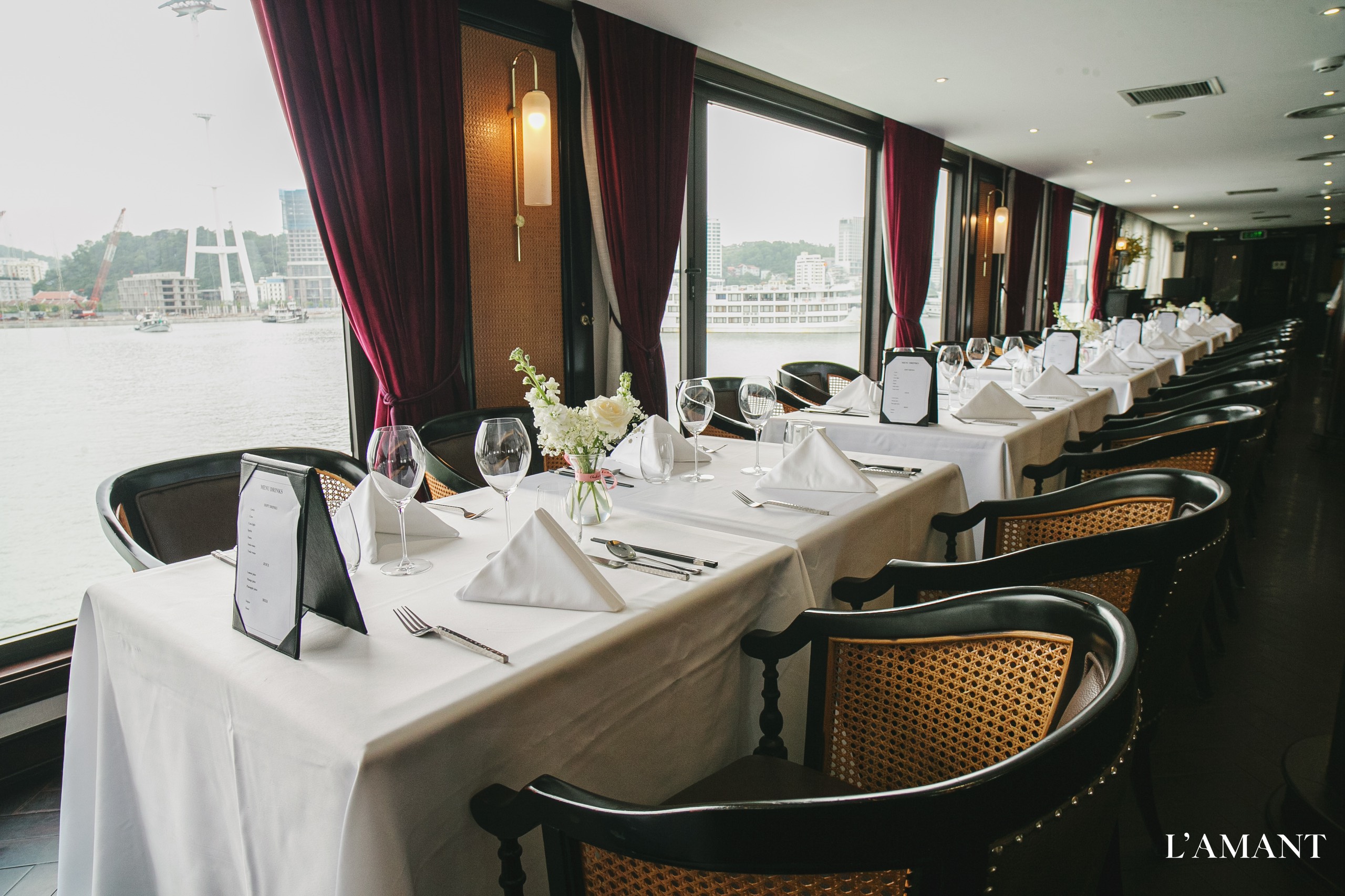 As night falls, the ship transitions into a more refined, intimate setting. Live performances in the piano lounge or on deck provide a gentle soundtrack to the evening, with lighting and staging calibrated to enhance the mood without overpowering it. Whether you are raising a glass to your honeymoon, an anniversary or another milestone, the combination of music, setting and attentive service turns each evening into a polished, resort-style experience set against the silhouettes of Halong or Lan Ha Bay.