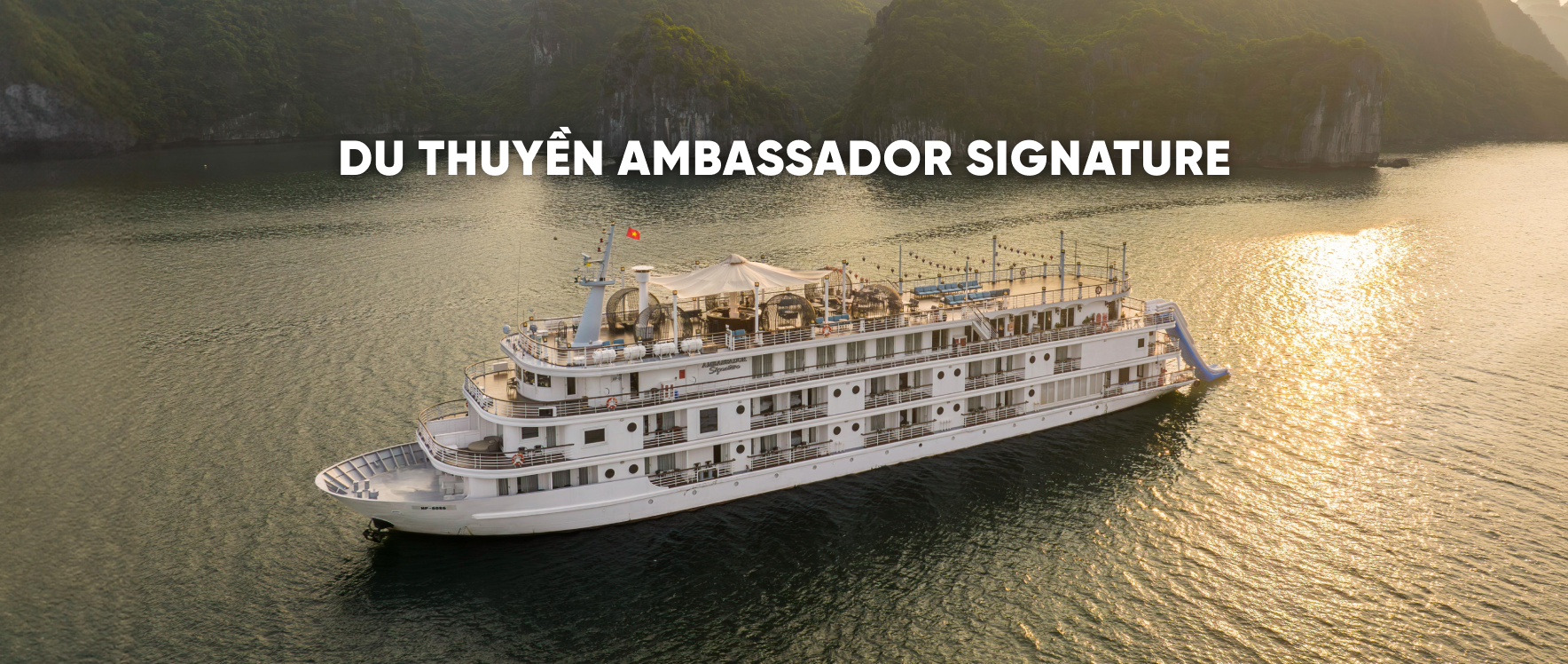 Chuỗi du thuyền cao cấp Ambassador Cruise mang đến những dịch vụ và trải nghiệm sang trọng hàng đầu trên hành trình khám phá Kỳ quan Vịnh Hạ Long và Vịnh Lan Hạ.