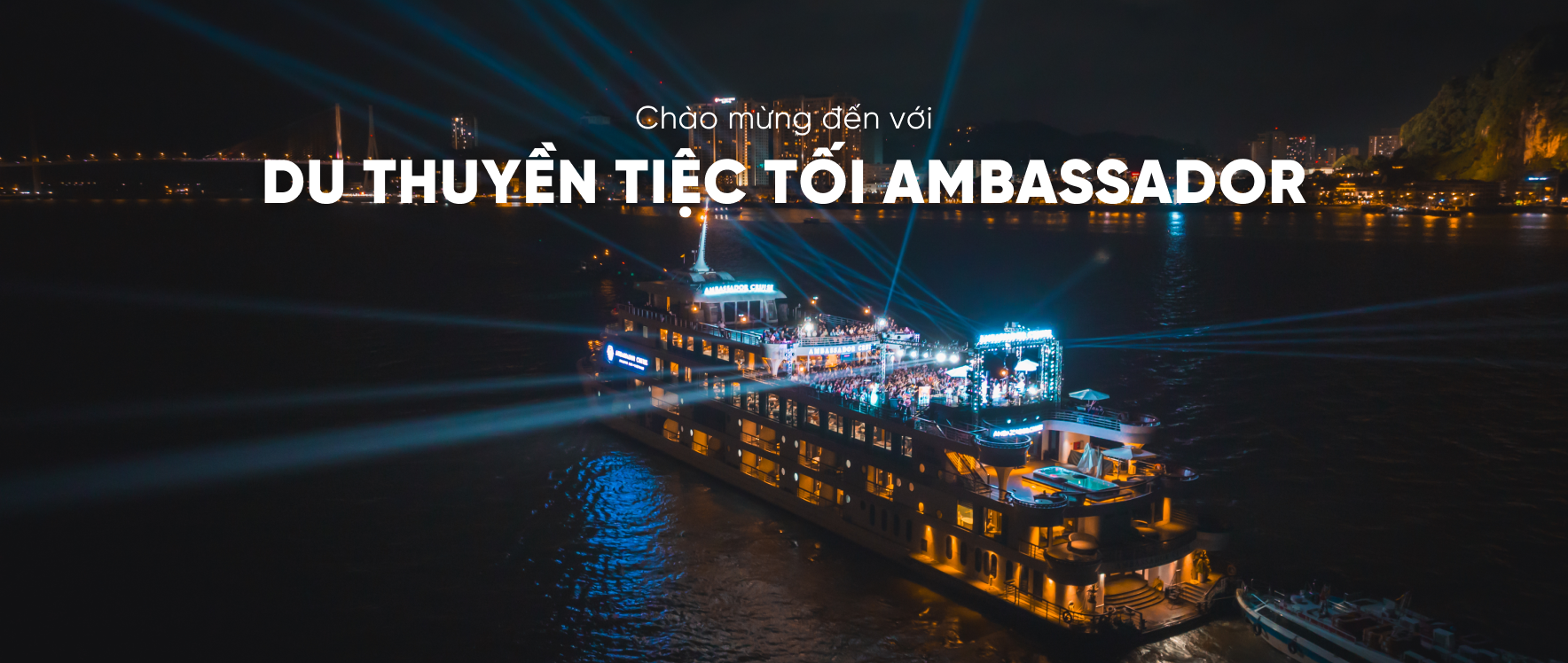 Ambassador Dinner Cruise là du thuyền nhà hàng 5 sao lớn nhất tại Hạ Long với sức chứa lên tới 500 khách. Hải trình 4 tiếng bao gồm trải nghiệm ngắm hoàng hôn, thưởng thức ẩm thực Á - Âu thượng hạng, kết hợp cùng chương trình giải trí sôi động hứa hẹn mang đến cho thực khách một buổi tối đáng nhớ với nhiều dấu ấn độc đáo chưa từng có.