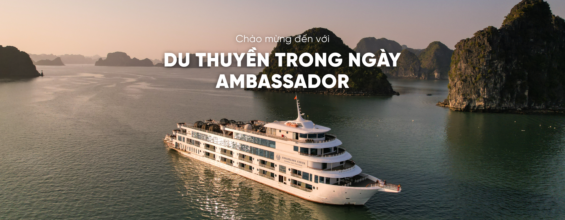 Ambassador Day Cruise là Du thuyền tham quan và nghỉ dưỡng trong ngày 5 sao lớn nhất trên Vịnh Hạ Long. Du thuyền được thiết kế trang nhã, sở hữu 39 cabin tiện nghi, Sundeck đôi 360 độ, hai nhà hàng thượng hạng với sức chứa lên đến 500 khách, hai quầy bar, bể sục Jacuzzi ngoài trời, cầu kính độc nhất vô nhị cùng chuỗi dịch vụ cao cấp và hoạt động giải trí đặc sắc, mang lại cho du khách những trải nghiệm tuyệt hảo trên miền Di sản.